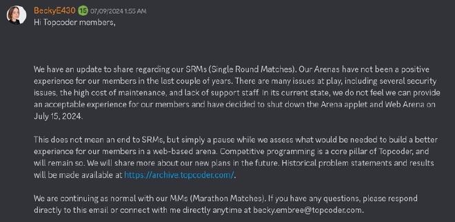 I did not found this update anywhere except topcoder discord, so I decided to share it to a wider audience.